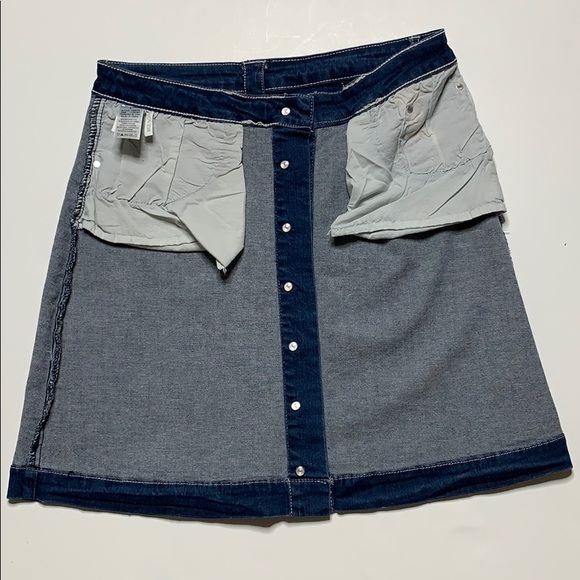 Cute Button Down Jean Mindcode Mini Skirt! Size Large. Has 2 front pockets and buttons all the way down the front of the Skirt! Laying flat waist is approx 15in, bottom of Skirt is approx 21in, from top to bottom of Skirt is approx 17in, 98% cotton & 2% spandex. Style# KS9072. 🚨Please look at all photos carefully & ask questions! Thank you!