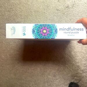 500-piece round puzzle featuring a colorful mandala design. Perfect for relaxation and mindfulness activities.
