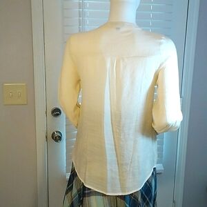 Mine Anthropologie Cream Cotton Blend Rayon Lace 3/4 Sleeves Blouse Size S