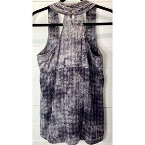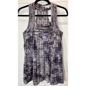 Add a touch of bohemian and military style to your wardrobe with this Mine Anthropologie Tie Dye Sleeveless Racerback Top. The halter neckline and pullover closure make it easy to wear, while the ruffle accents and purple color give it a unique and playful look. Made of 100% cotton, this top is lightweight, breathable, and perfect for all seasons. It is machine washable, making it easy to care for. This classic fit top is available in size M and is ideal for casual occasions.