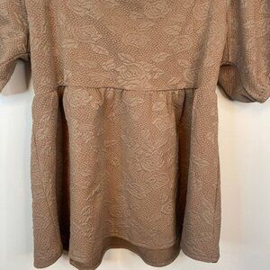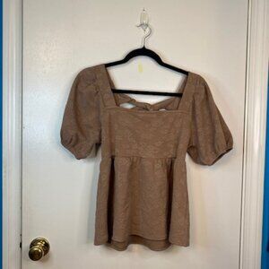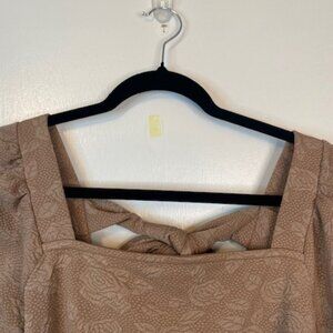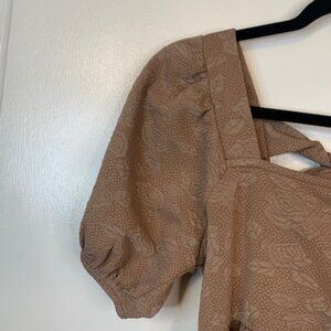 This brown MINE top is so cute. Would look great dressed up with skinny jeans a cute pair of flats. This top is a little heavy. Ties in the back. Floral pattern