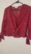 Elegant burgundy blouse with polka dots. Features a stylish front twist. Ideal for casual outings.
