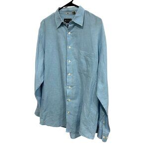 • Tags: linen shirt, button-up, classic fit, Mine brand, light blue shirt, men's clothing, casual shirt, long sleeve, lightweight linen, large size, chest pocket, professional attire, comfortable wear