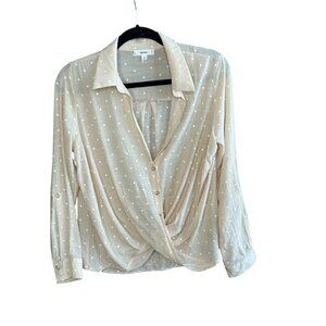 Mine Coastal Beige White Polka Dot Twist Wrap Front Blouse Size Small