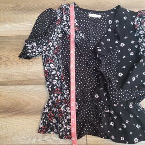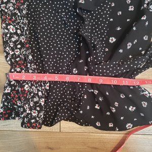 Color: Black with white polka dots and white and red floral design.