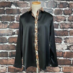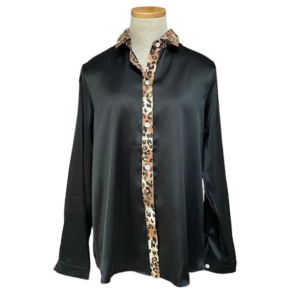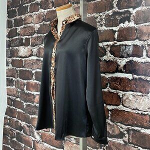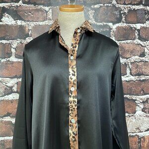 Mine Free Blouse NWT Long Sleeve Button Up Leopard Print Black Size Small S