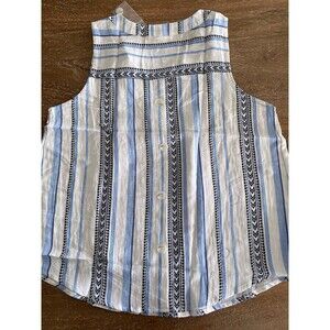 Mine Medium Blouse Aztec Blue Striped Sleeveless V Neck Tank Button Back. Shipped with USPS Ground Advantage.