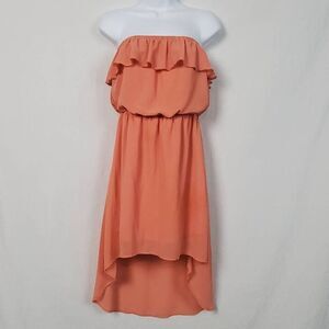 Mine Medium Salmon Pink Strapless Hi-low Dress
