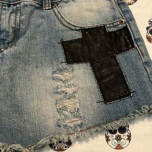Mine Denim Shorts Patched Crosses Cut Off Distressed RippedWomens Size Medium