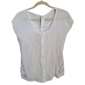 Mine Pocket Top S Small White Scoop Neck Short Sleeve