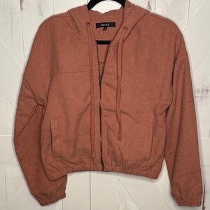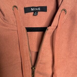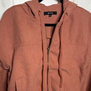 Rust bomber jacket by Mine, featuring a hood and zip closure. Ideal for casual wear.