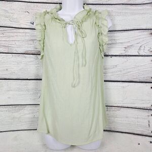 Mine Sage Green Ruffle Tie Neck Sleeveless Blouse Size M