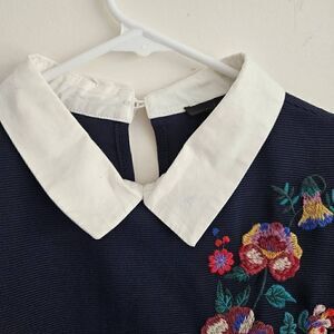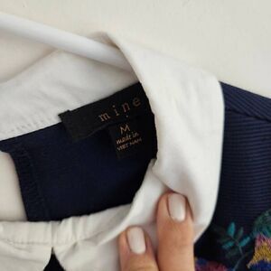 Mine Shirt Dress Mini Shift Embroidered Floral Collar Short Sleeve Navy M