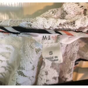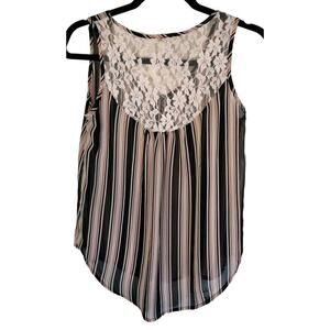 Mine Striped Sleeveless Flowy Blouse Lace Back Black White Pink Size Small