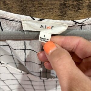 Elevate your wardrobe with this stylish white and black grid pattern top. Perfect for any occasion, this top offers a chic and modern look.