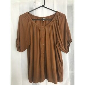 Elegant white blouse with ruffle details. Short sleeves. Puffy sleeves. Feminine and Lightweight fabric. Gently worn. No stains or holes. Pit to pit measures 18.