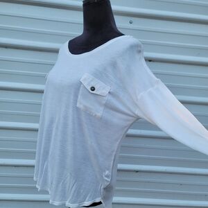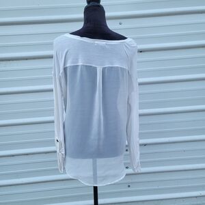 Mine Women's Long Sleeve Blouse Button Down Shirt Top Pockets Size L Solid White