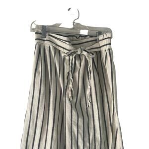 Mine Women's Size Large Linen Blend Striped Belted Flowy Wide Leg Crop Pants
