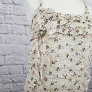 Mine sleeveless flower print ruffled gauzy top women's size L