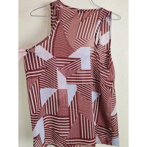 Mine women's Rust Orange White Sheer Geometric Top TANK Top Sleeveless size L