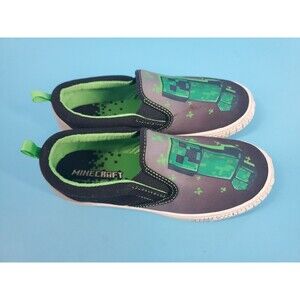 Minecraft Boy's Canvas Shoe Sz 2 Slip On Green Black