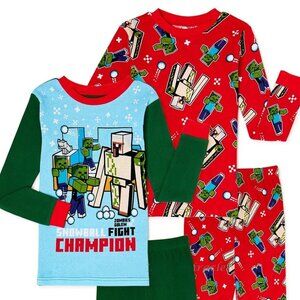 🎮 Minecraft Christmas Pajama Set Boys Girls Size 12– 4 Piece Cotton Set – NWOT