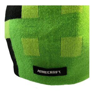 Official Minecraft Creeper beanie featuring the iconic pixelated green pattern and large black pom on top. Made from soft knit fabric for warmth and comfort, this officially licensed Mojang product is perfect for gamers, collectors, and Minecraft fans of all ages.