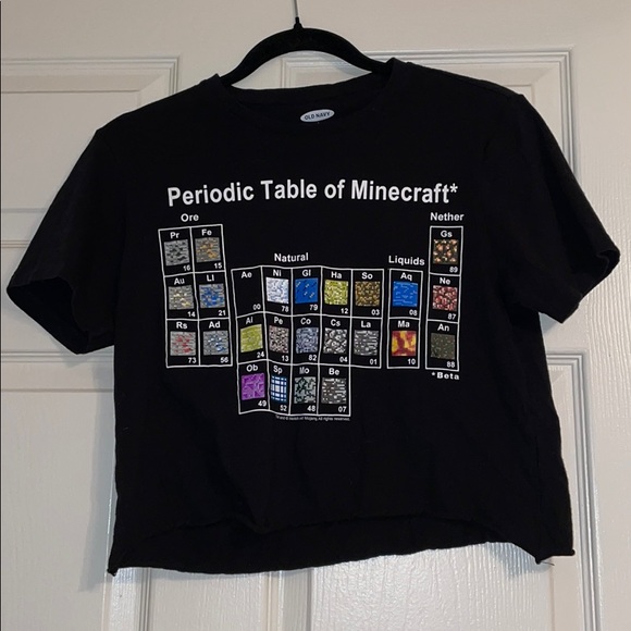 Black crop top feat. a periodic table of Minecraft blocks. Originally from Old Navy. Small, like new.
