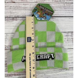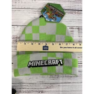Minecraft Embroidered Green Gray Check Cuffed Beanie New