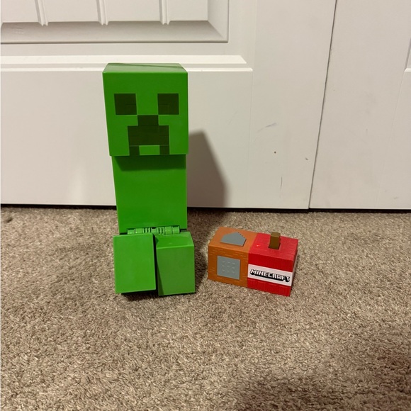 Explore the blocky world with this Minecraft Exploding Creeper action figure. Moves forward and backward using the controller and will “explode” and light up once the detonate button is pressed.This green figure is perfect for imaginative play and adventure.