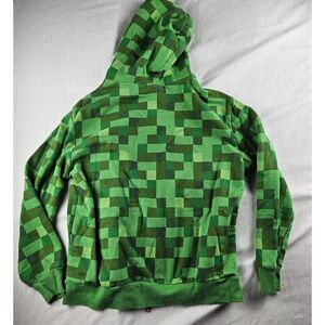 Minecraft JinX Boys XL Creeper Hoodie Full Zip Jacket Costume Face