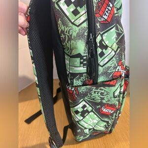 This Minecraft kids backpack features a vibrant green and black design, perfect for young fans. Durable and stylish, it's ideal for school or travel.