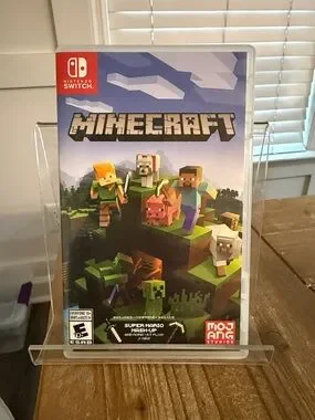 Official Minecraft game for Nintendo Switch. Features iconic block-style graphics and creative gameplay. Includes green and brown cover art elements. Compatible with Nintendo Switch systems.