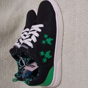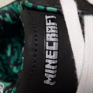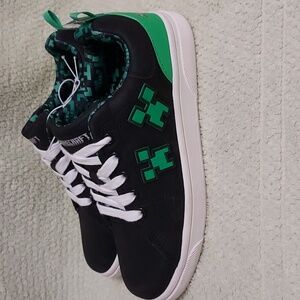 Minecraft sneakers, size 2, black/green, lace up, pull tab, minecraft design throughout, cushioned insole, padded collars, rubber sole, new with tags *may have marks on toe area see pic, very good condition