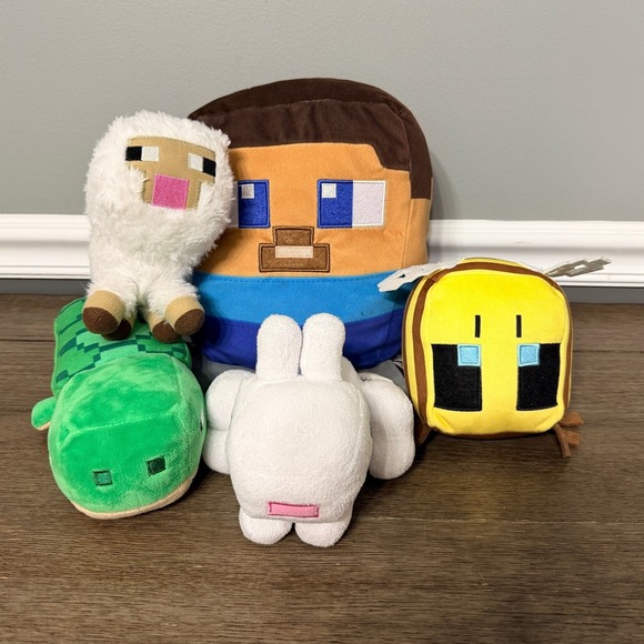 Minecraft Steve, Bee, Turtle, Sheep & Rabbit Plush Lot