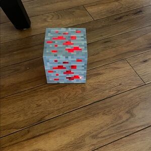 Minecraft torch and ore block set. Features pixelated design in gray, yellow, and red. Still light up with batteries. Both items included
