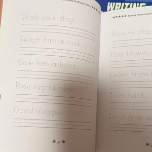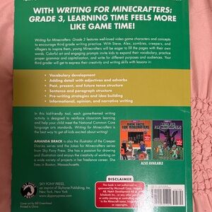 Set of two educational books. Includes a Minecraft-themed writing book and a handwriting workbook for boys. Perfect for grade 3 students. 2 pages out of the red book. No writing on any pages.