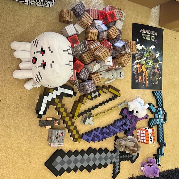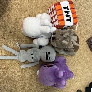5 plush- squid (tarnished see photos) purple rabbit (like new) brown rabbi (like new) , skeleton (like new), TNT (like new) and white rabbit (like new)