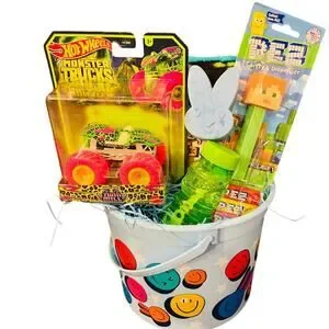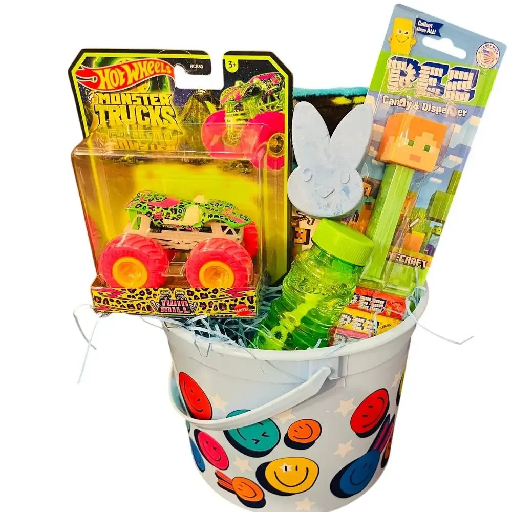 Minecraft bundle preschool throw 40 x 50 soft and adorable a Pez candy dispenser, hot wheels monster truck glow in the dark, green bubbles and blue chalk. All items are new and ready to ship.Can add to the bundle or modify. Thank you..