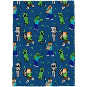 Minecraft fleece throw blanket 46x60 kids bedding gamer creeper skeleton steve a