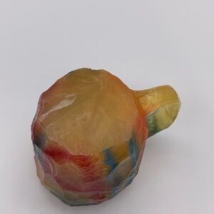 This Mineral Crystal Flint Stones Style Stainless Steel Colorful 6 Oz Coffee Mug is a small, geometric-shaped mug with a natural design. It features multiple vibrant colors, an Art Deco style, and a mineral crystal theme. Made of stainless steel and resin, it is suitable for both hot and cold beverages. The mug has a 6 oz capacity, a 3" diameter, and a 4.4" height, with a handle for easy use.