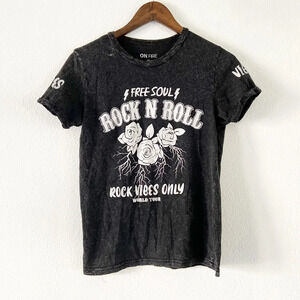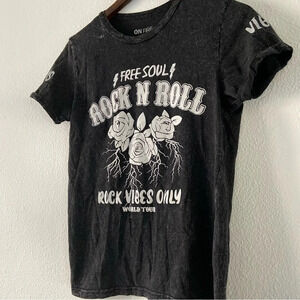 Mineral Wash Rock N Roll Graphic Tee Grunge Indie Streetwear Black Shirt Medium Womens Mens Unisex Short Sleeve Rolled Sleeve Band Tee Concert Festival Music Vibes Edgy Casual Cotton Comfy Lived In Everyday Vintage Style