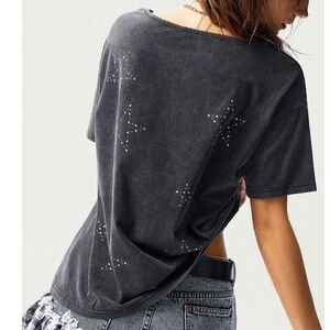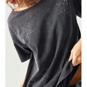 Mineral Wash Star Rhinestone Detail Oversized Short Sleeve Top