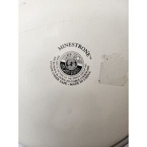Minestrone Ceramic Vegetable Themed Salad Bowl. No chips cracks or scratches detected throughout the bowl. See photos for condition and measurements. Item will be properly and securely packaged for shipping. Most reasonable offers are accepted.