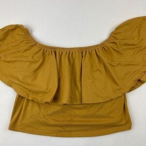Minette Blouse Womens Large Gold Crop Round Neck