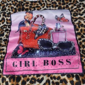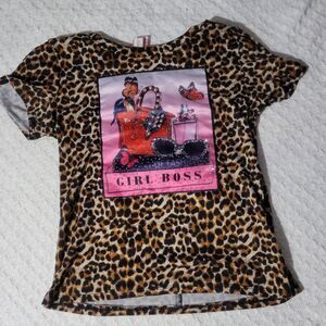 Minette Girl Boss Cheetah Print Shirt With Rhinestones Size Girls Medium Glam