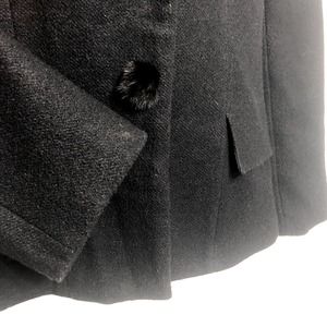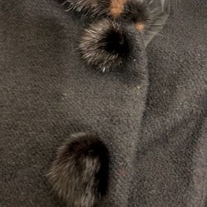 Ming Liu Wool Blazer Black Brown Rabbit Fur Trim Pom Pom Buttons