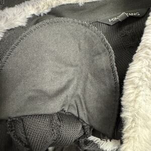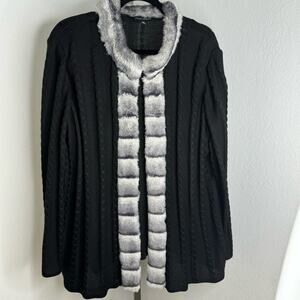 Ming Wang Black Faux Fur Cable Knit Cardigan Sweater Size 0X Glam Quiet Luxury