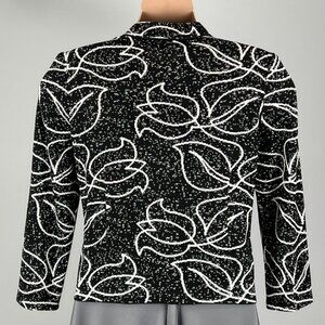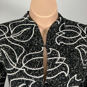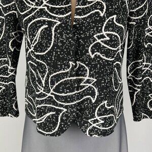 Ming Wang Black White Floral Knit Blazer Stretch Snap Front size PL Petite Large