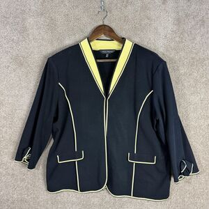 Ming Wang Blazer Womens XL Black Yellow Cardigan Contrast Trim Knit Jacket Bow